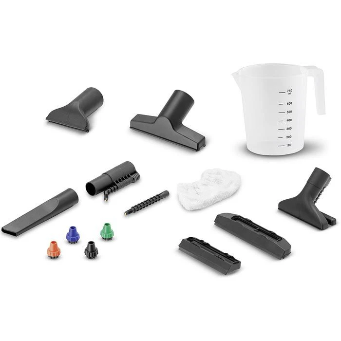 Lieferung: inkl. Bodenreinigungs-Set (3 verschiedene Einsätze für Hart- und Teppichboden), 2 Dampfsaugrohre 0,5 m, Handdüse, Rundbürstenset (4-farbig) Punktstrahldüse, Polsterdüse (klein und groß), Fugendüse, Möbelpinsel, Entschäumer (Foamstop), Messbecher, Reinigungsbürste, 2-Tank-System, HEPA 12-Filter, Zubehörtasche, Kindersicherung