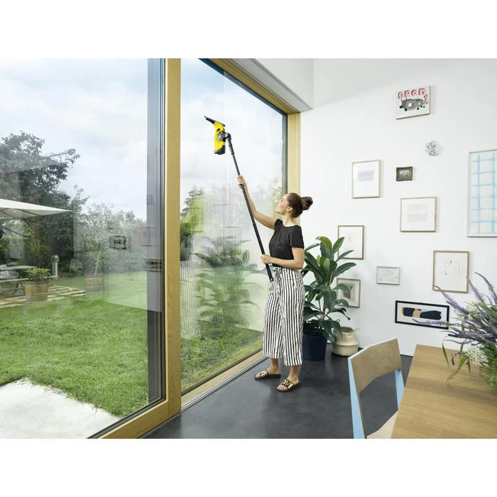 Lieferung: inkl. 1 Teleskopstiel mit Einwascher und Mikrofaserwischbezug, 1 Teleskopstiel mit Halterung für Fenstersauger
