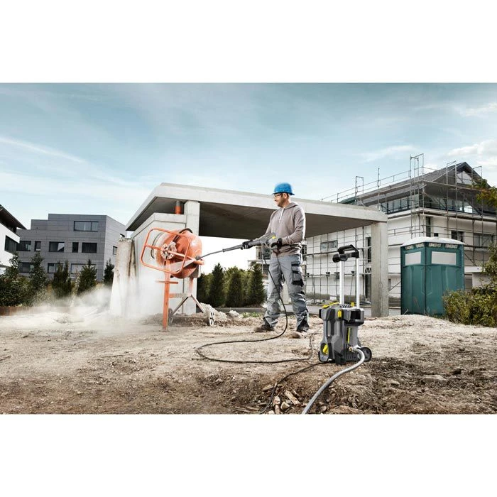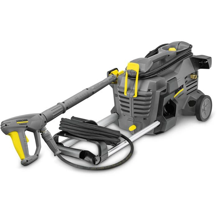 sonstiges: mit Rädern für optimale Mobilität, stehender und liegender Betrieb möglich, mit integriertem Tragegriff auf der Gerätevorderseite, kompakte Bauweise und geringes Gewicht, Verschraubung zur Aufbewahrung eines Flächenreinigers direkt am Gerät, praktische Düsenfächer für Dreifachdüse und Rotordüse, Gummiband zur Fixierung des HD-Schlauchs