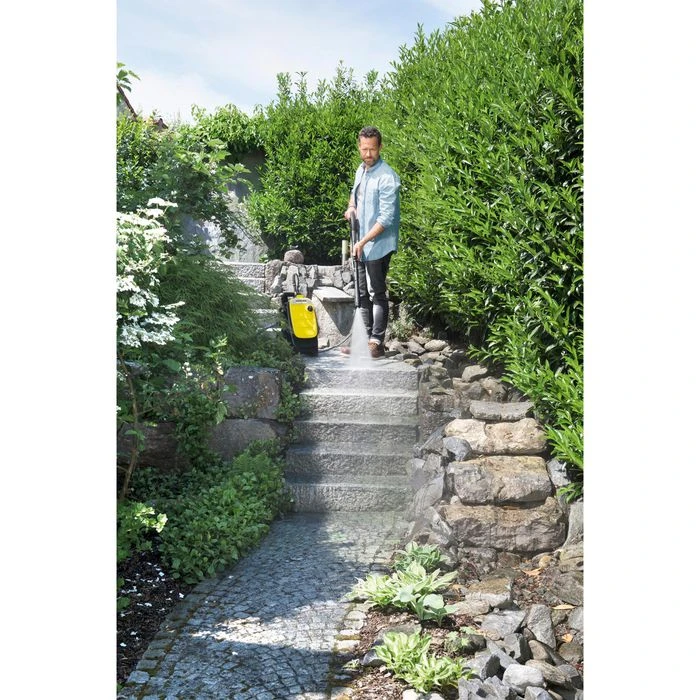 sonstiges: mit Rädern für optimale Mobilität, platzsparende Aufbewahrung, höhenverstellbarer ergonomischer Teleskoptragegriff und 2. Tragegriff zum komfortablen Transport, Zubehöraufbewahrung am Gerät, integrierter Wasserfilter, geräteseitiger Quick-Connect-Anschluss für schnelles Wechseln des Hochdruckschlauches