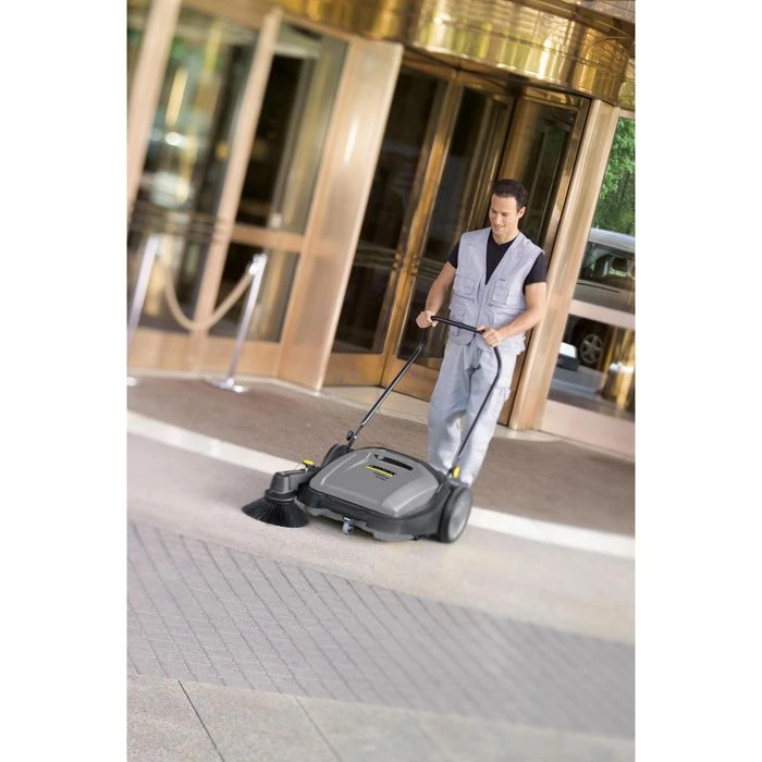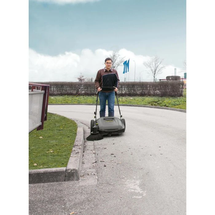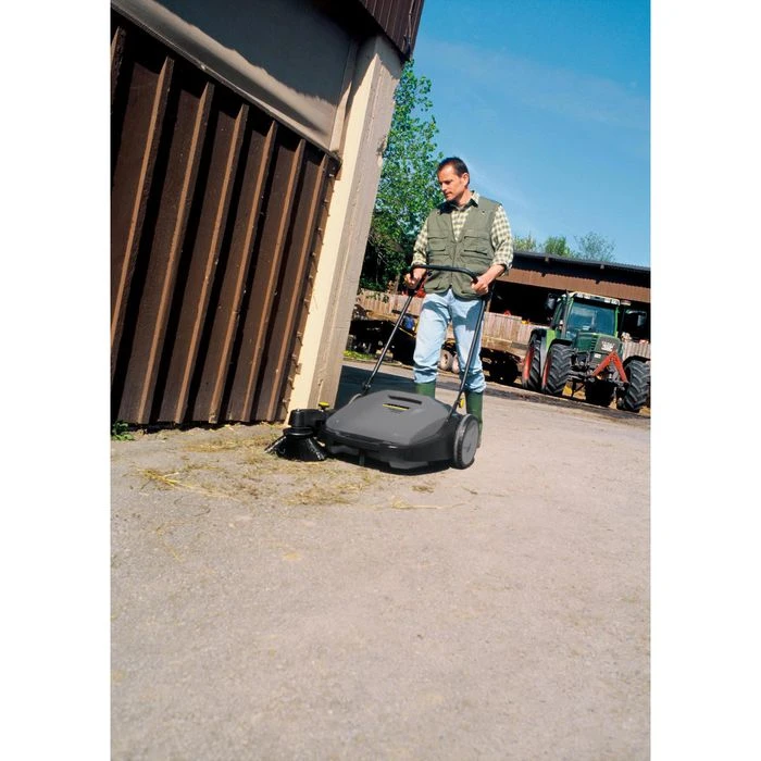 sonstiges: für den ganzjährigen Einsatz und verschiedene Schmutzarten (Blüten, Sand, Laub, Streugut), ideal für größere und breitere Flächen, komfortabler und selbststehender Kehrgutbehälter, komplett umklappbar, platzsparende Aufbewahrung möglich