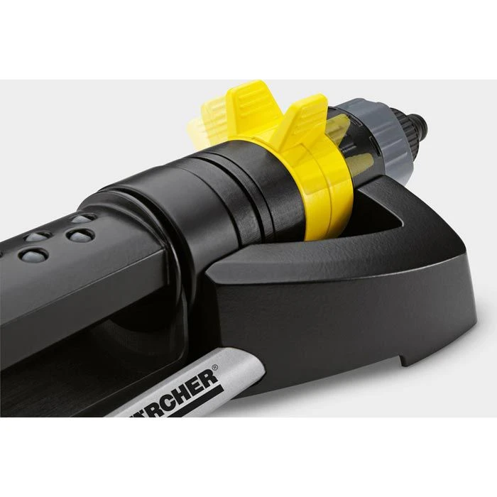 sonstiges: stufenlos einstellbare Reichweite (Wassermenge), Spritzschutz SplashGuard – ermöglicht bequemes Aufstellen und Ausrichten ohne nass zu werden, langlebiges Getriebe, Aufhängebügel zur sicheren Verstauung, Bodenfixierung mit Spikes oder Schlitten