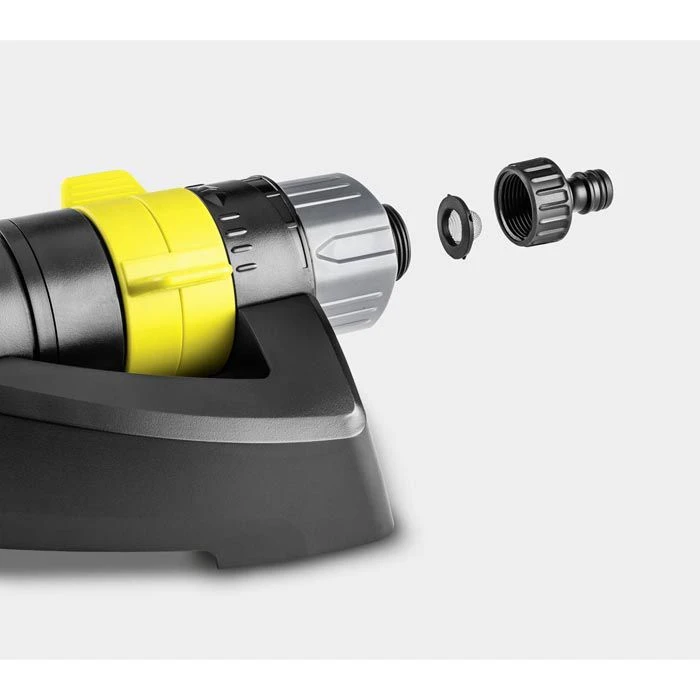 sonstiges: stufenlos einstellbare Reichweite (Wassermenge) und Sprengbreitenregulierung, Spritzschutz SplashGuard – ermöglicht bequemes Aufstellen und Ausrichten ohne nass zu werden, schmutzunempfindliches und langlebiges Getriebe, Aufhängebügel zur sicheren Verstauung, Bodenfixierung mit Spikes oder Schlitten