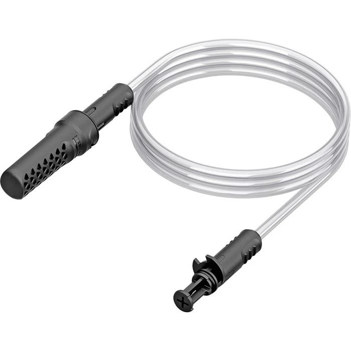 • Schlauchstutzen ans Gerät und Schlauchende in Wasserquelle legen