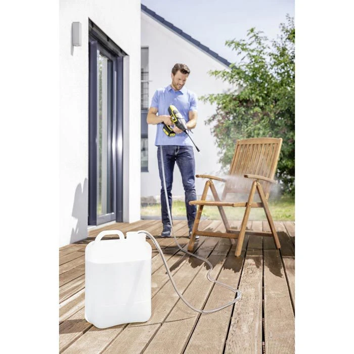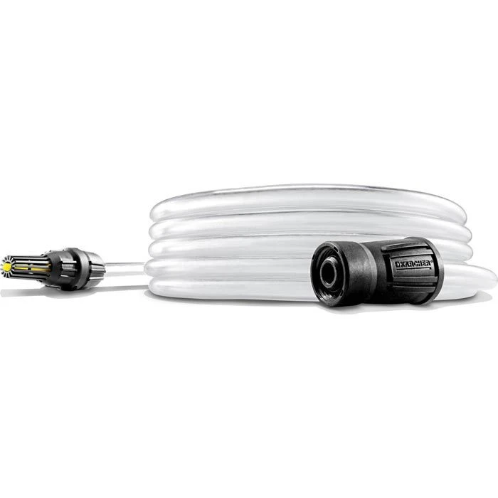 sonstiges: zur Versorgung des Akku-Druckreinigers mit Wasser aus alternativen Wasserquellen (Regenfässer, Wassertonnen), Schlauchstutzen am Gerät anschließen und Schlauchende mit Filter in die Wasserquelle legen