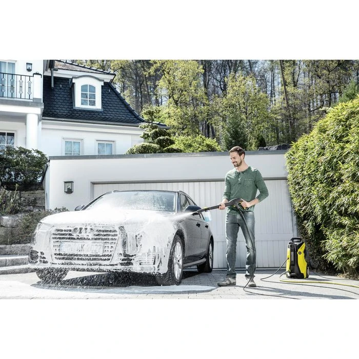 sonstiges: zur mühelosen Reinigung sämtlicher Oberflächen, Dosierung des Reinigungsmittels erfolgt bequem an der Schaumdüse (gelber Knopf), Strahlebene nach Bedarf drehbar