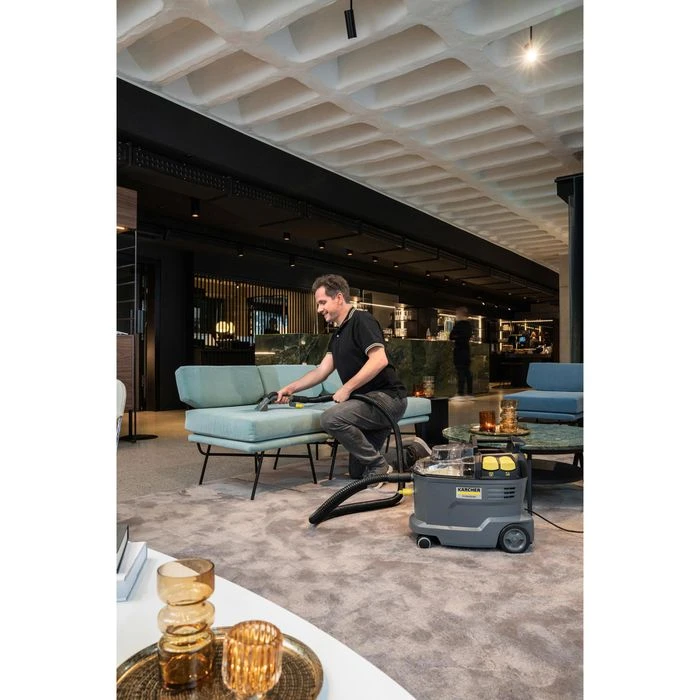 sonstiges: beutellos, die Mischung aus Leitungswasser und Reinigungsmittel wird mit Druck eingesprüht und zusammen mit dem gelösten Schmutz abgesaugt, kippsicher, spritzwassergeschützter Netzschalter, Transportgriff für komfortables Tragen, integrierte Aufbewahrung für Polsterdüse